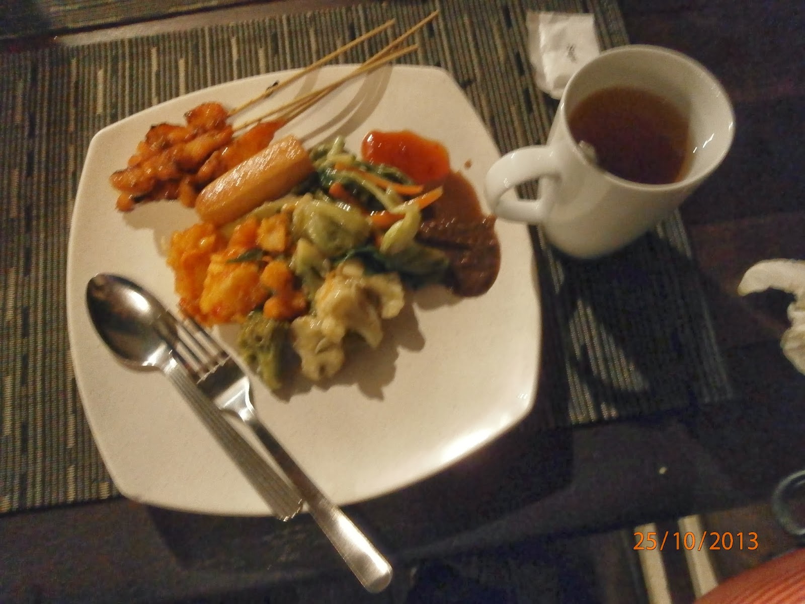 Selepas semua peserta kemas diri, kenderaan datang jemput kami dari penginapan untuk makan malam di Balsam Cafe, Kinabalu Park pada jam 7.00 malam. Hujan masih lagi turun dan keadaan yang sejuk menyelubungi semua peserta. Suhu pada ketika ini ialah 16 darjah celcius. Sampai di Balsam cafe, kami pun makan malam. Pelbagai jenis hidangan disajikan kepada semua peserta. Terdapat ramai juga peserta dari negara luar sedang menikmati makan malam bersama kami.